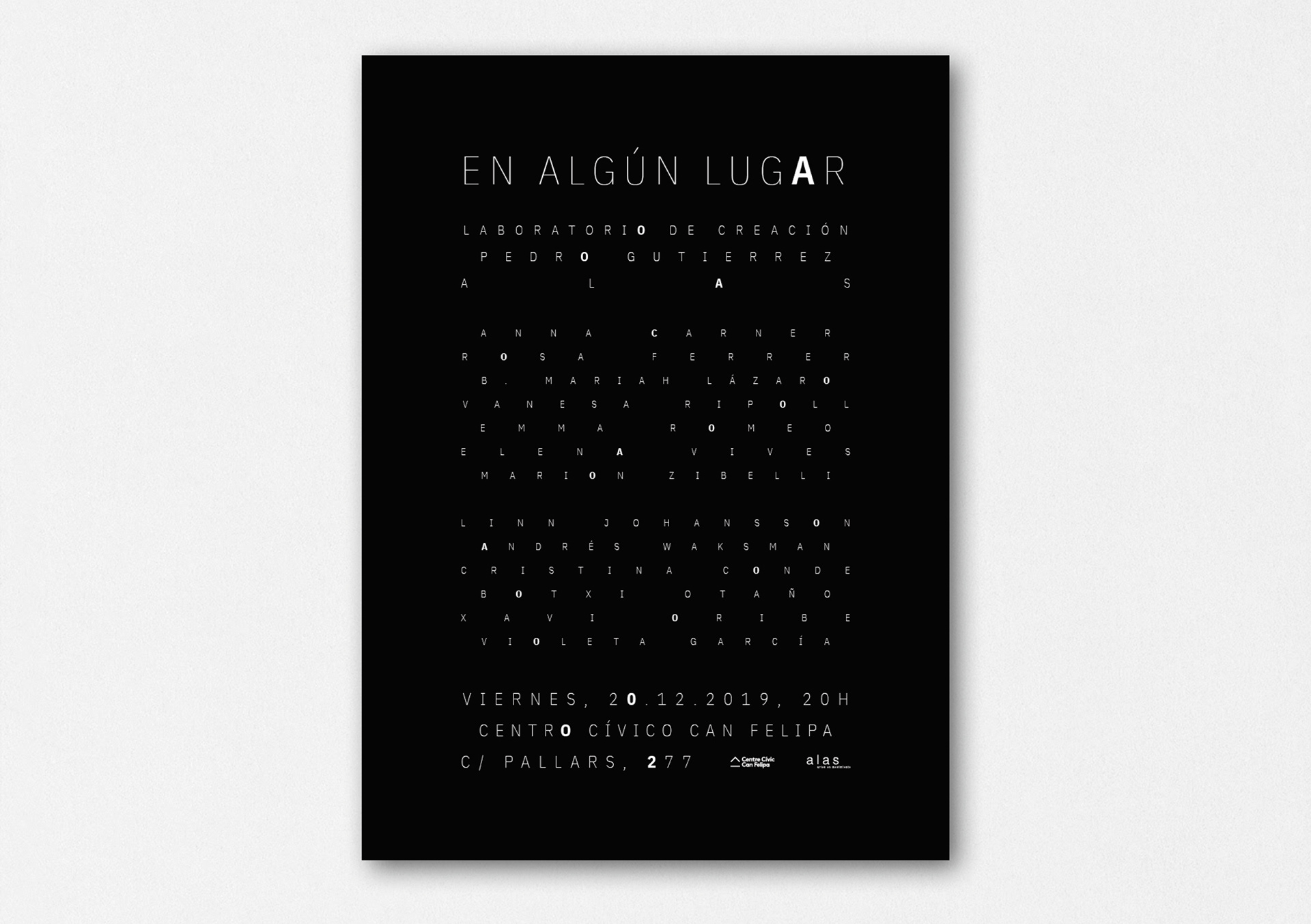 Cartel para la muestra del laboratorio de creación En Algún Lugar, de Alas, Artes en Movimiento